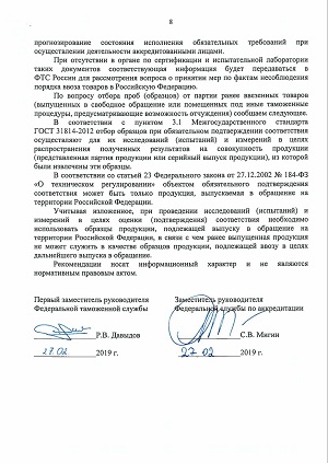 2019年3月15日俄罗斯海关官网原文刊登了该“联合意见”,至此,所有在俄罗斯申请系列产品海关联盟EAC认证合格证(COC证书)的设备、产品、材料均需通过正规物流途径(可查询到物流信息和清关记录)送样到俄罗斯指定实验室进行样品测试;申请单批次证书的可在产品所在地海关取样检测。
